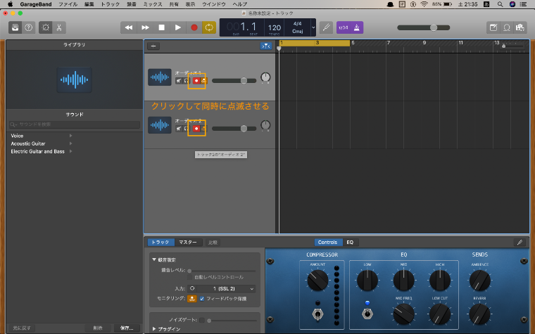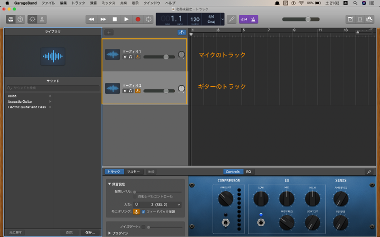 ガレージバンドでマイクとギターを複数トラックで同時に録音する方法を解説します。