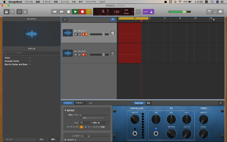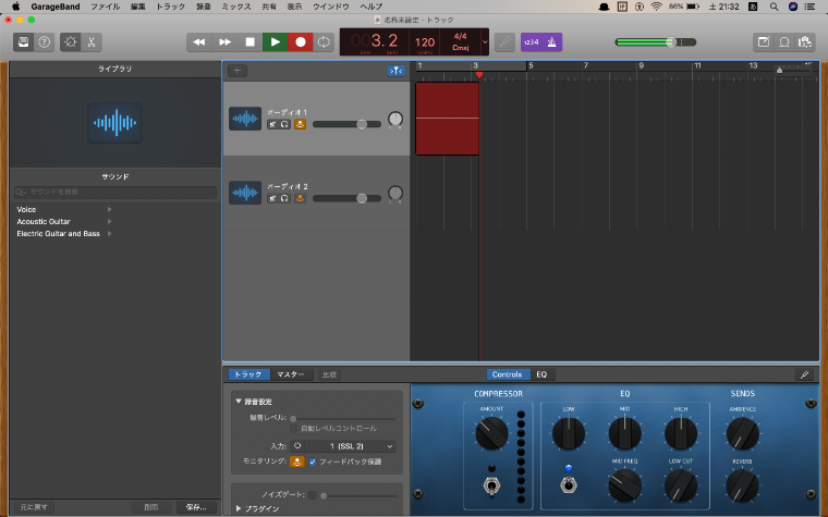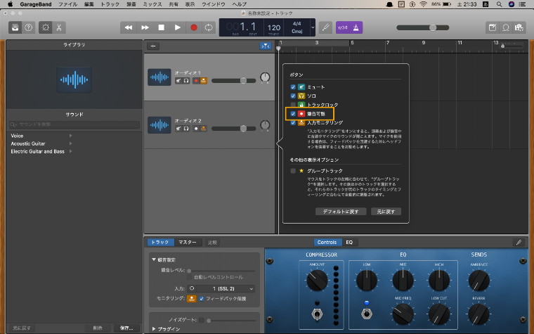 ガレージバンドでマイクのトラックを作成